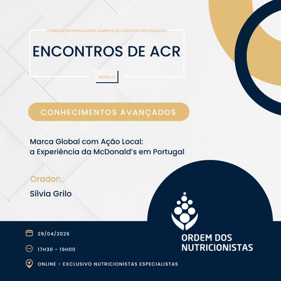 Encontram-se abertas as inscrições para a sessão 21 dos Encontros de ACR - Conhecimentos Avançados - Marca Global com Ação Local: a Experiência da McDonald’s em Portugal, que vai decorrer no dia 29 de abril de 2026, das 17h30 às 19H00, por meios telemáticos.