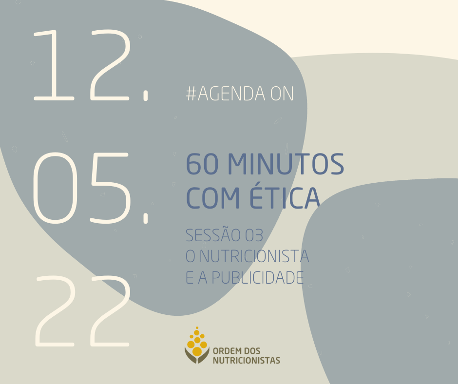 A sessão 03 do ciclo de workshops “60 minutos com ética” vai decorrer já no próximo dia 12 de maio, pelas 18h00, por meio telemáticos e debater o tema “O nutricionista e a publicidade”.